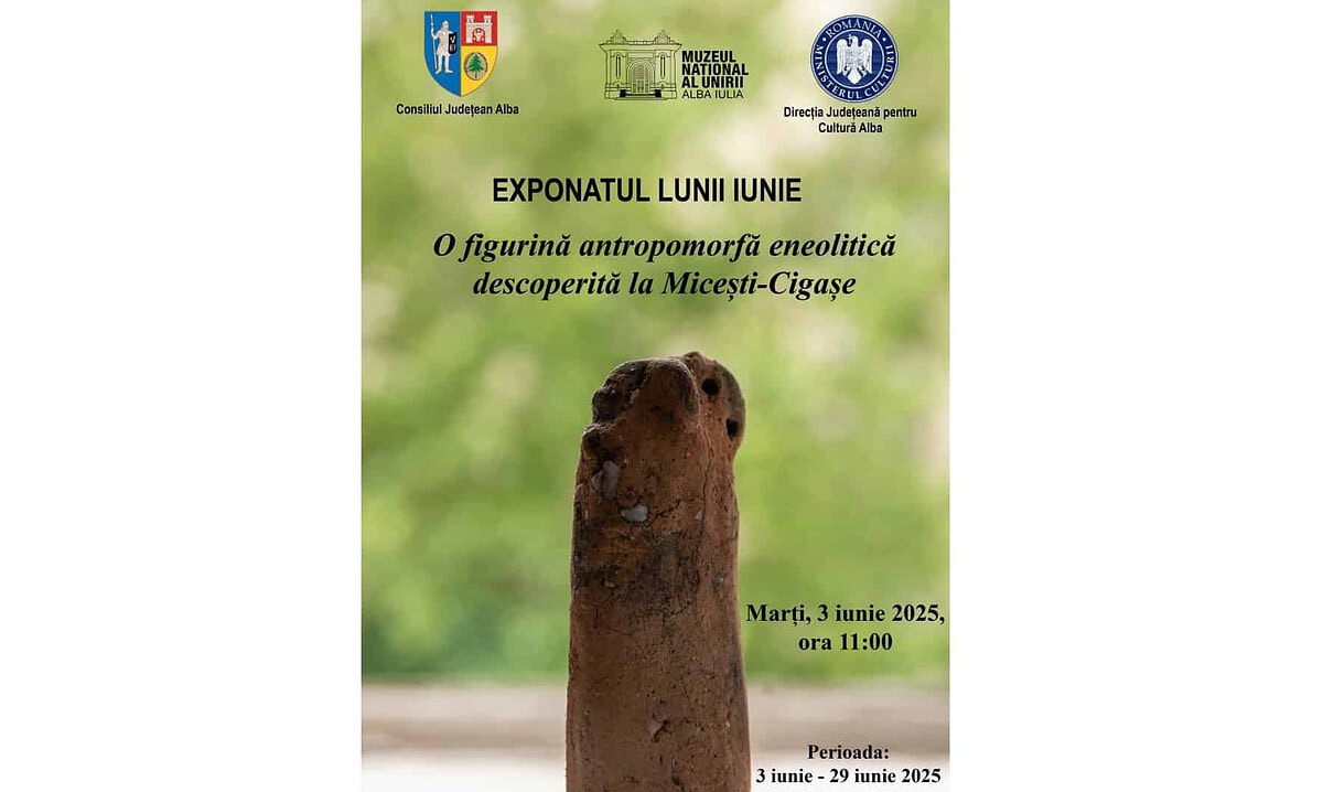 Marți, 3 iunie 2025, la Muzeul Național al Unirii Alba Iulia va fi vernisat exponatul lunii iunie: O figurină antropomorfă eneolitică descoperită la Micești-Cigașe. Piesa supusă atenției provine din cercetarea arheologică preventivă desfășurată în situl arheologic de la Micești-Cigașe în luna octombrie a anului 2024.