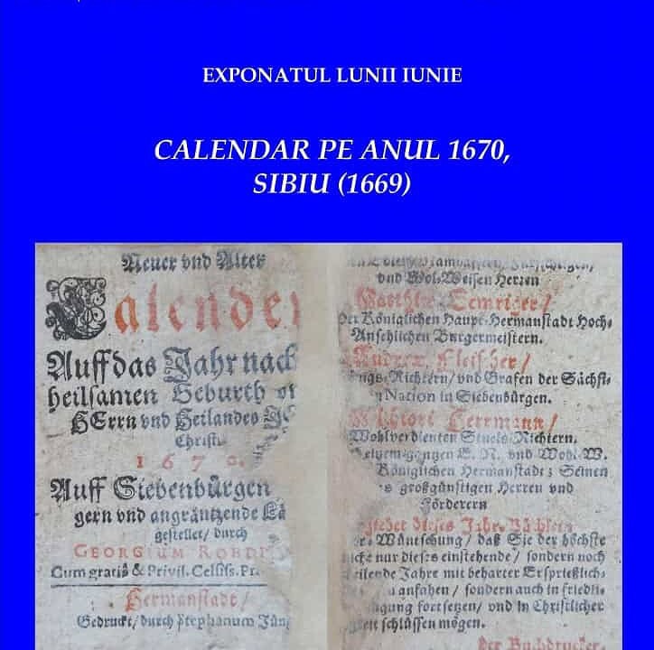 MARȚI: Exponatul lunii IUNIE la Muzeul Național al Unirii din Alba Iulia. Calendarul pe anul 1670, apărut la Sibiu la sfârşitul anului 1669