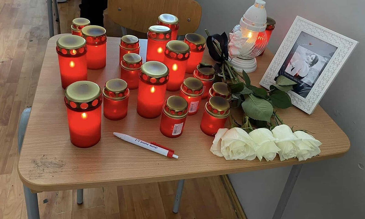 Miercuri, pe banca acesteia au fost amplasate candele, flori și o poză cu cea care până în ziua tragediei le-a fost colegă și prietenă.