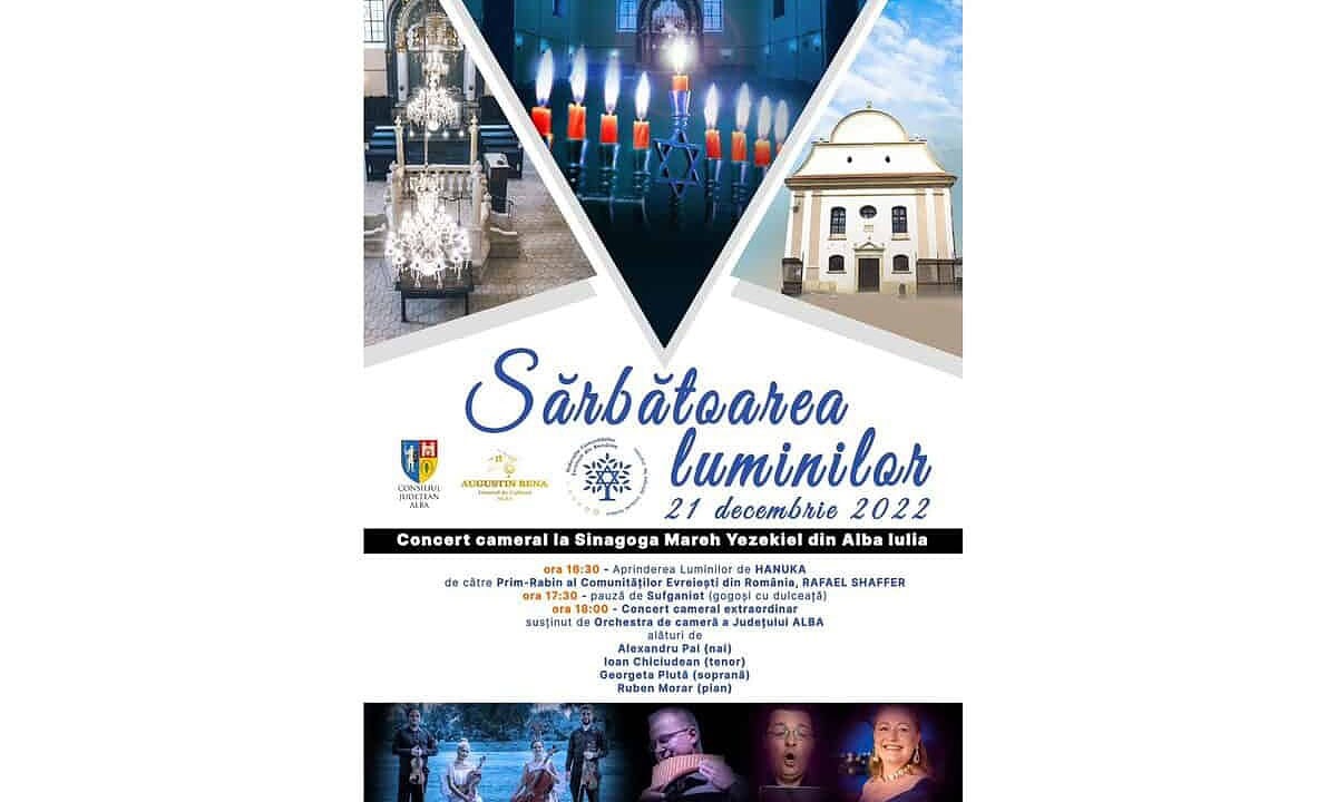 Sărbătoarea Luminilor, un eveniment deosebit de important și onorant este organizat în 21 decembrie, la Sinagoga Mareh Yezekiel din Alba Iulia. În cadrul acestuia va avea loc și un concert cameral, susținut de Orchestra de cameră a județului Alba.