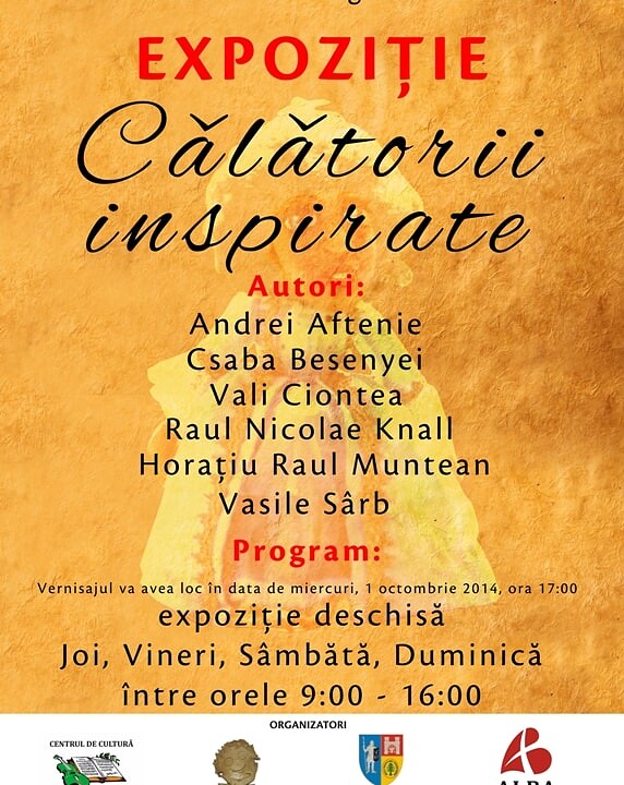 Ora 17.00 Călătorii inspirate – vernisaj expoziție foto Centrul de Cultură Augustin Bena Alba; Galerii Poarta a III-a a Cetății „Alba Carolina”