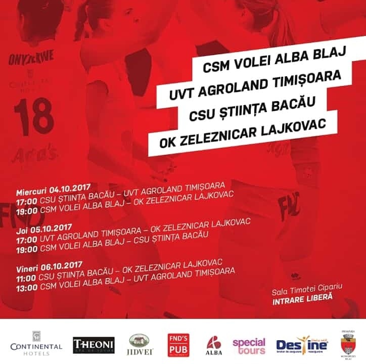19.00: CSM Volei Alba Blaj - OK Zeleznicar Lajkovac;