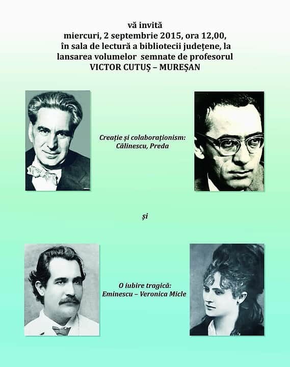 Este vorba despre „Creație și colaboraționism: Călinescu, Preda” și „O iubire tragică: Eminescu - Veronica Micle, semnate de profesorul Victor Cutuș - Mureșan.