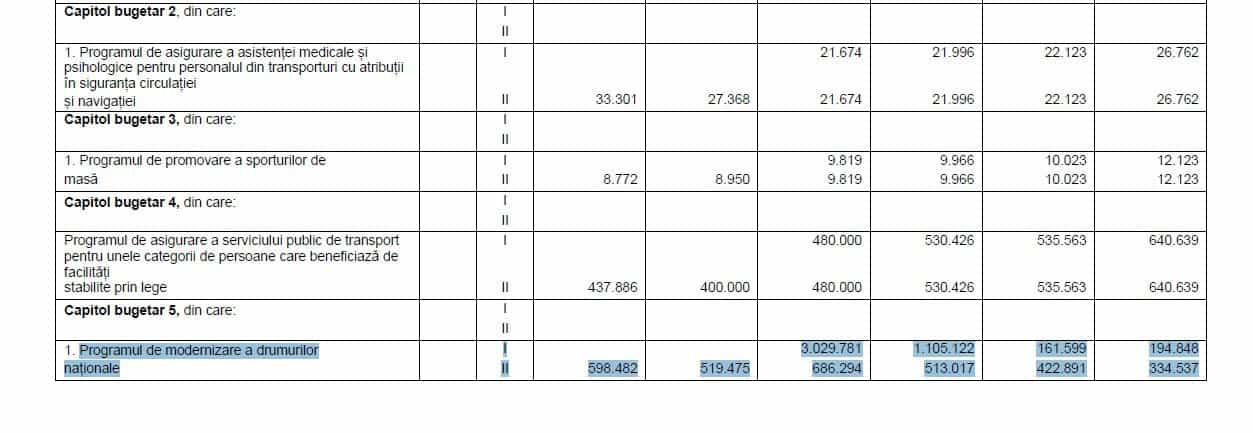 Ministerul Transporturilor a mărit şi bugetul pentru modernizarea drumurilor naţionale, de la 519,4 milioane de lei, nivelul execuţiei preliminate pe 2017, până la 686,2 milioane de lei în 2018. Sunt alocați mai mulţi bani şi pentru programul de întreţinere a infrastructurii rutiere, respectiv 331,6 milioane de lei, faţă de 257,1 milioane de lei cheltuiţi anul acesta.