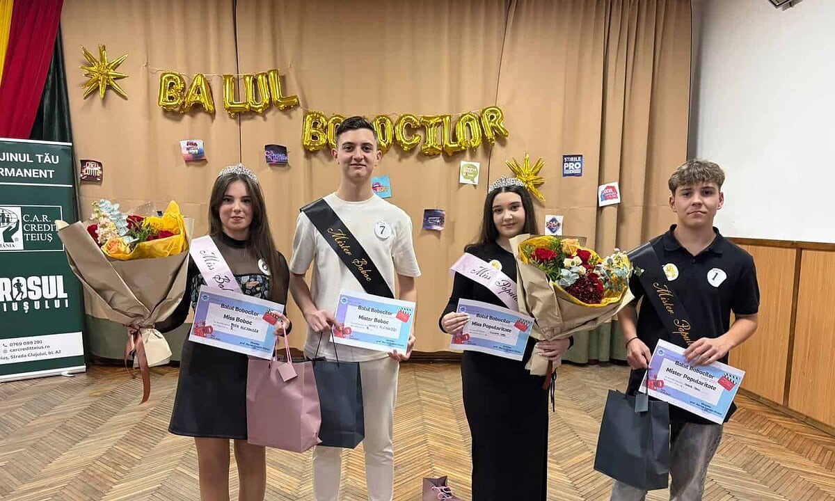 Liceul Teoretic din Teiuș și-a desemnat elevii care vor purta anul acesta titulatura de Miss și Mister Boboc 2025. Este vorba despre Popa Alexandra care a câștigat titlul de Miss Boboc și Nemeș Alexandru, desemnat Mister Boboc.