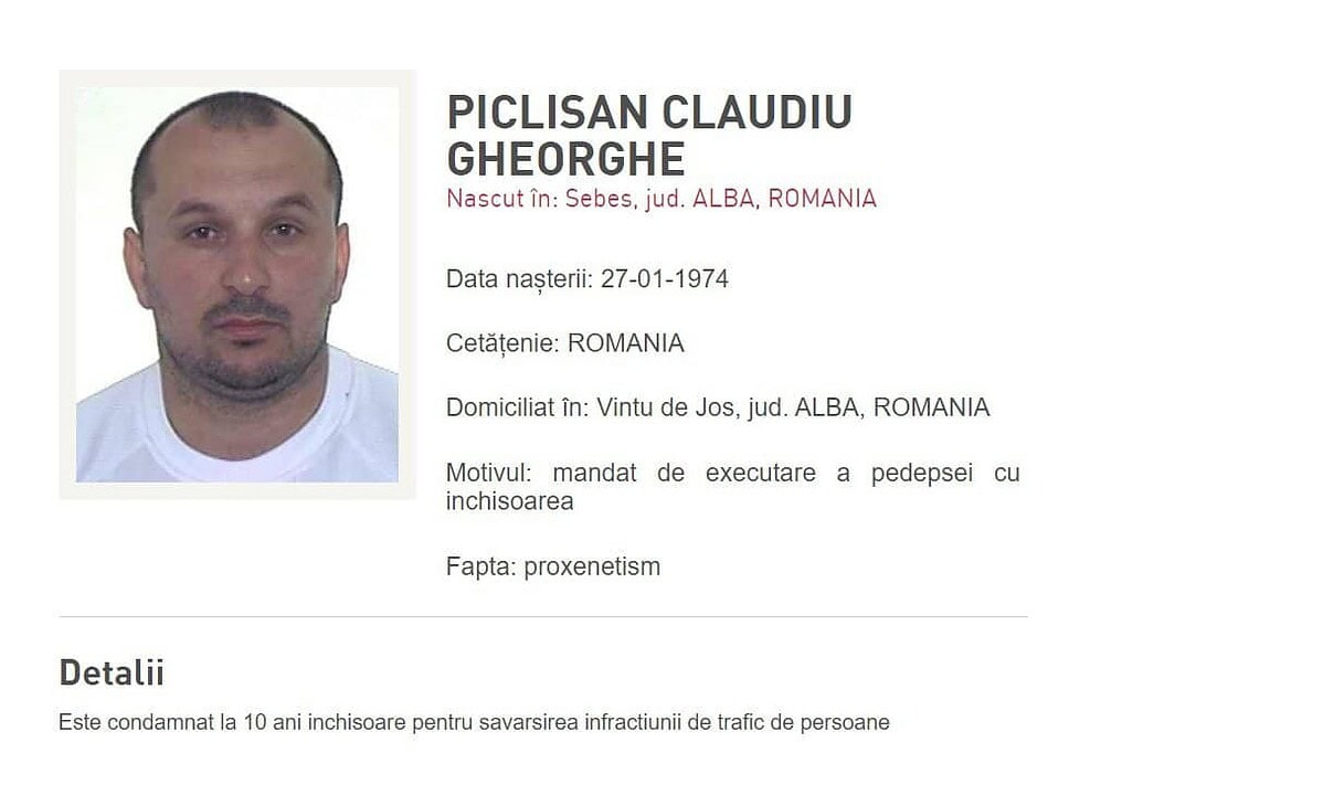 Potrivit surselor Alba24, este vorba despre Claudiu Gheorghe Pâclișan, căutat de mulți ani. Faptele pentru care a fost condamnat au fost comise în 2004-2005.