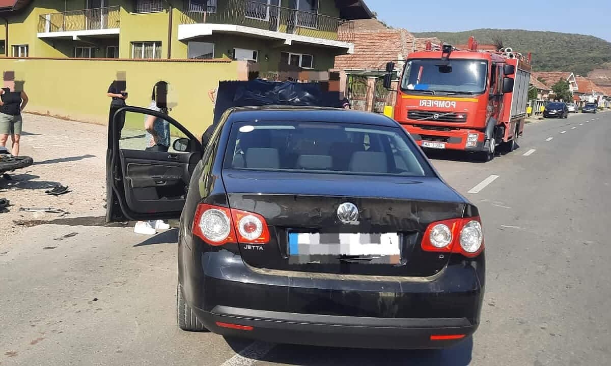 UPDATE FOTO: ACCIDENT între Ciumbrud și Băgău. Motociclist rănit după ce a fost lovit de o mașină