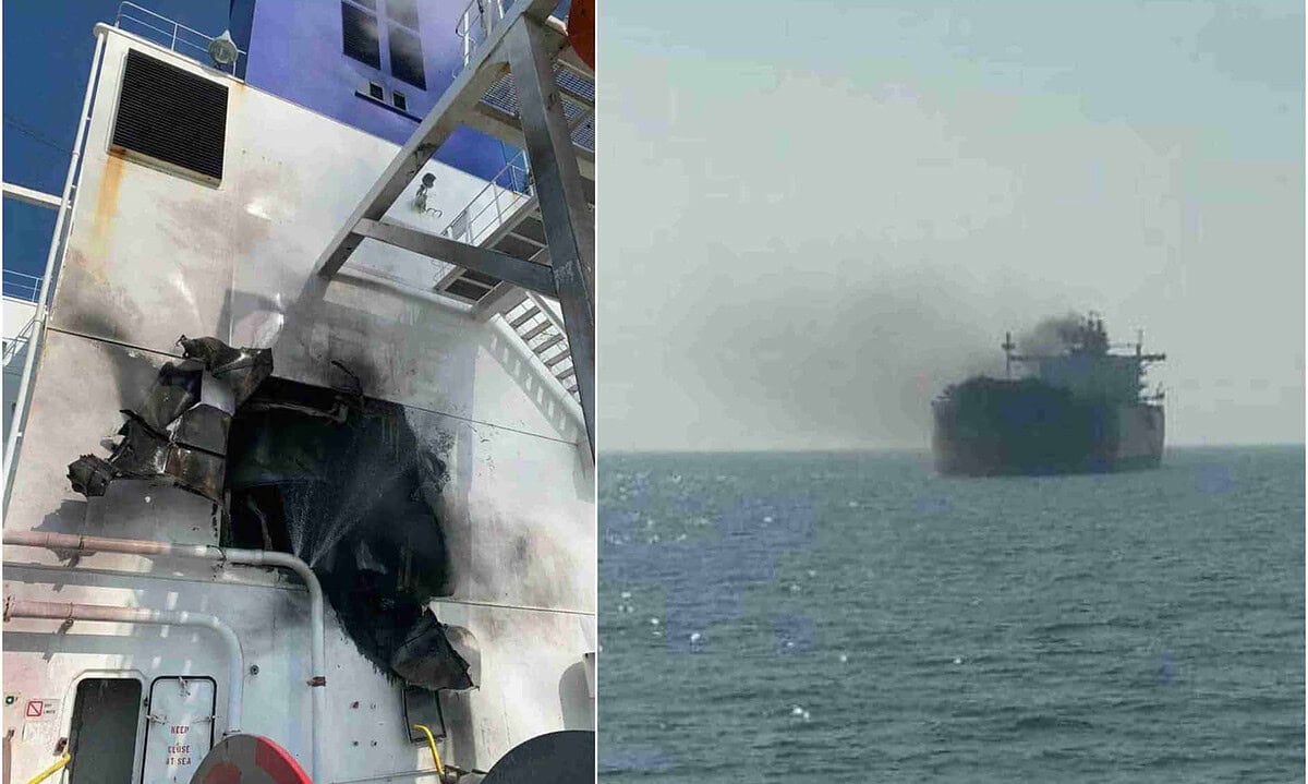FOTO: Navă sub pavilion moldovenesc, lovită de un obuz în Marea Neagră. Marinarii au părăsit-o echipați doar cu vestele de salvare
