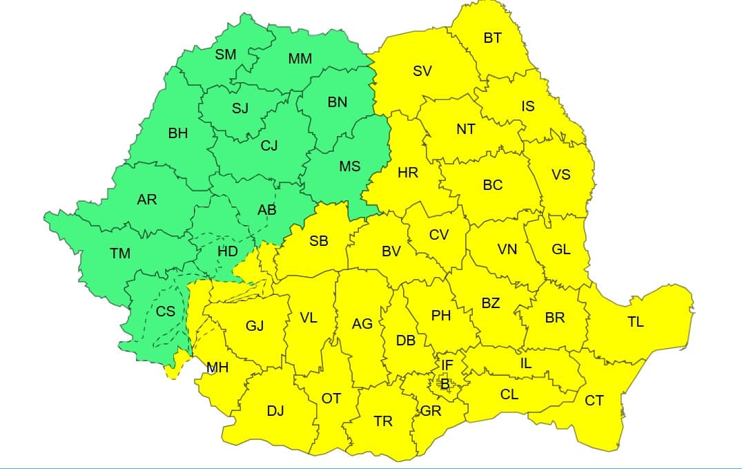 În funcţie de evoluţia şi intensitatea fenomenelor meteorologice, Administraţia Naţională de Meteorologie va actualiza prezentul mesaj inclusiv prin avertizări pentru fenomene severe imediate.