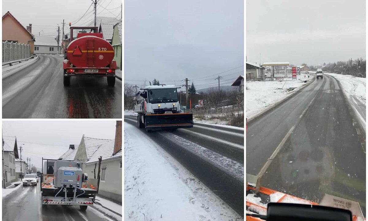 Ninsoarea de miercuri a generat polei, la Sebeș. Municipalitatea a intervenit cu utilajele din propriul parc auto