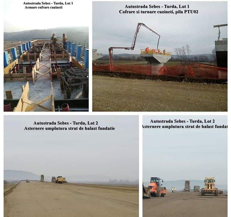 Compania Naţională de Administrare a Infrastructurii Rutiere a făcut publice, la sfârşitul acestei săptămâni, imagini cu lucrările în desfăşurare pe loturile 1 şi 2 ale Autostrăzii Sebeş - Turda, adică tronsoanele cele mai întârziate, de la Sebeş până la intrarea în Aiud. Sunt evidenţiate operaţiuni de turnare a fundaţiei carosabilului şi de montare a stâlpilor de susţinere. Reamintim că termenul estimat pentru finalizarea lucrărilor pe cele două tronsoane este anul viitor, dată optimistă, având în vedere recenta amânare a deschiderii circulaţiei pe lotul 3 şi stadiul din teren.