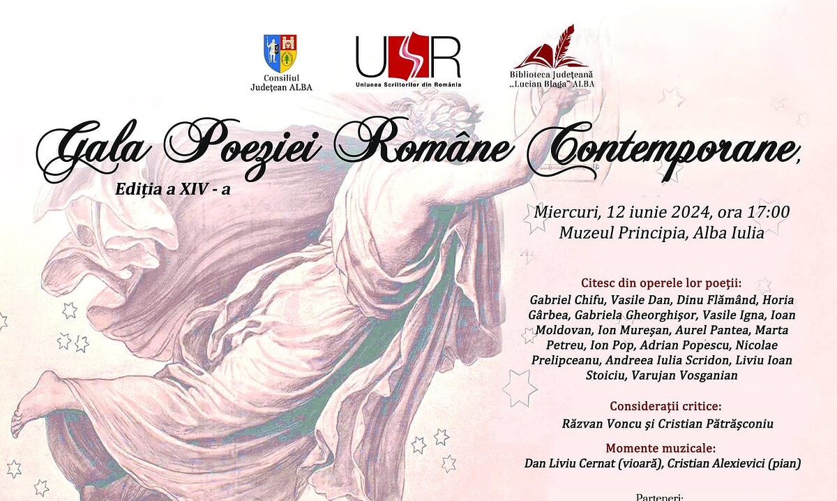 Ajunsă la cea de-a XIV-a ediție, Gala Poeziei Române Contemporane este organizată și în acest an de Consiliul Județean Alba, Uniunea Scriitorilor din România și Biblioteca Județeană „Lucian Blaga” Alba.