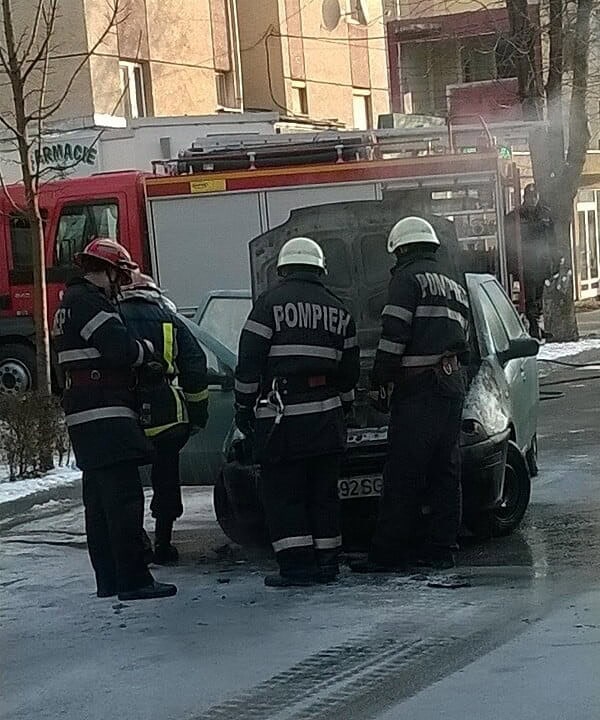 O mașină a luat foc în localitatea Săliștea din județul Alba. Incendiul a pornit la blocul motor al autoturismului