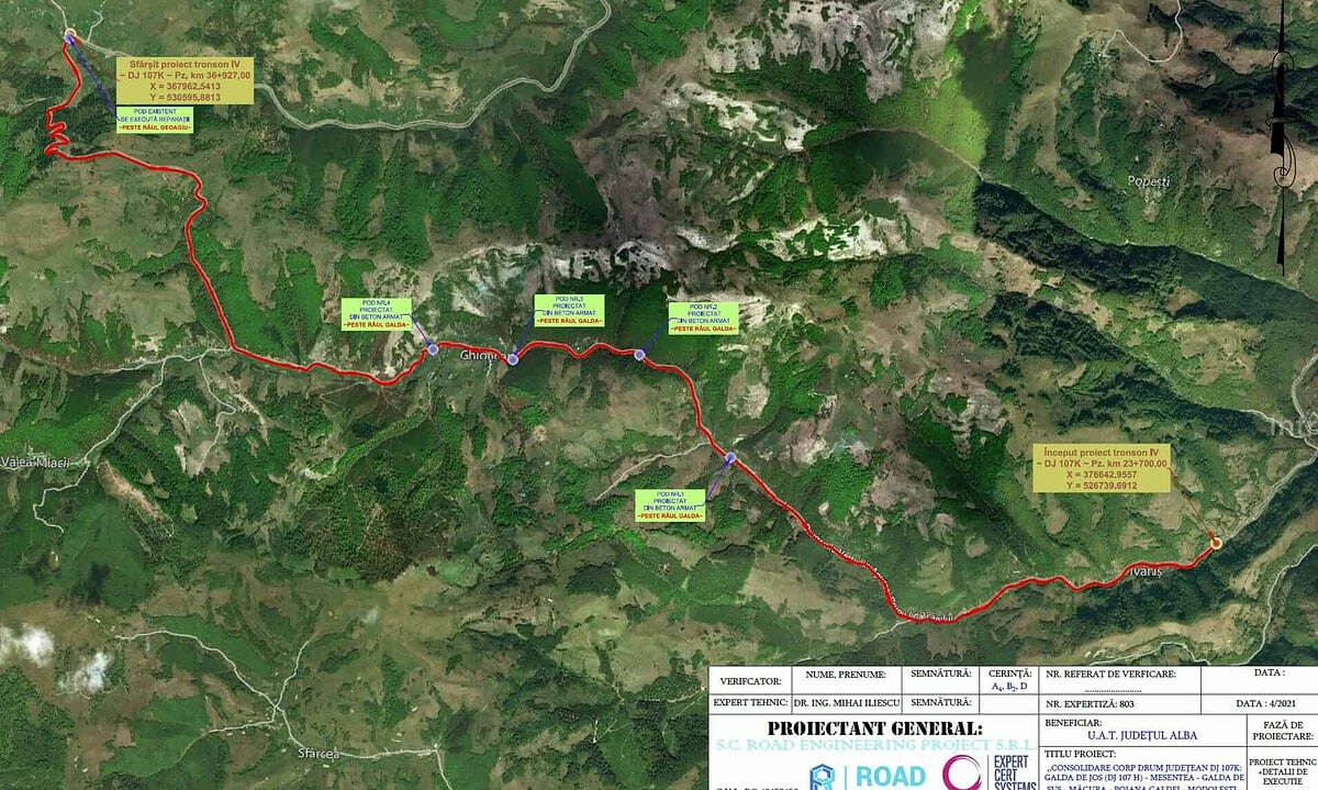 Consiliul Județean Alba a lansat marți, 21 februarie, în Sistemul Electronic de Achiziții Publice (SEAP) o licitație pentru execuția lucrărilor de consolidare a drumului județean DJ 107 K: Galda de Jos (DJ 107H) – Mesentea – Galda de Sus – Măgura – Poiana Galdei – Modolești – Întregalde – Ivăniș – Ghioncani – DJ 107I (Bârlești), tronson IV: km 23+700 – km 37+500.