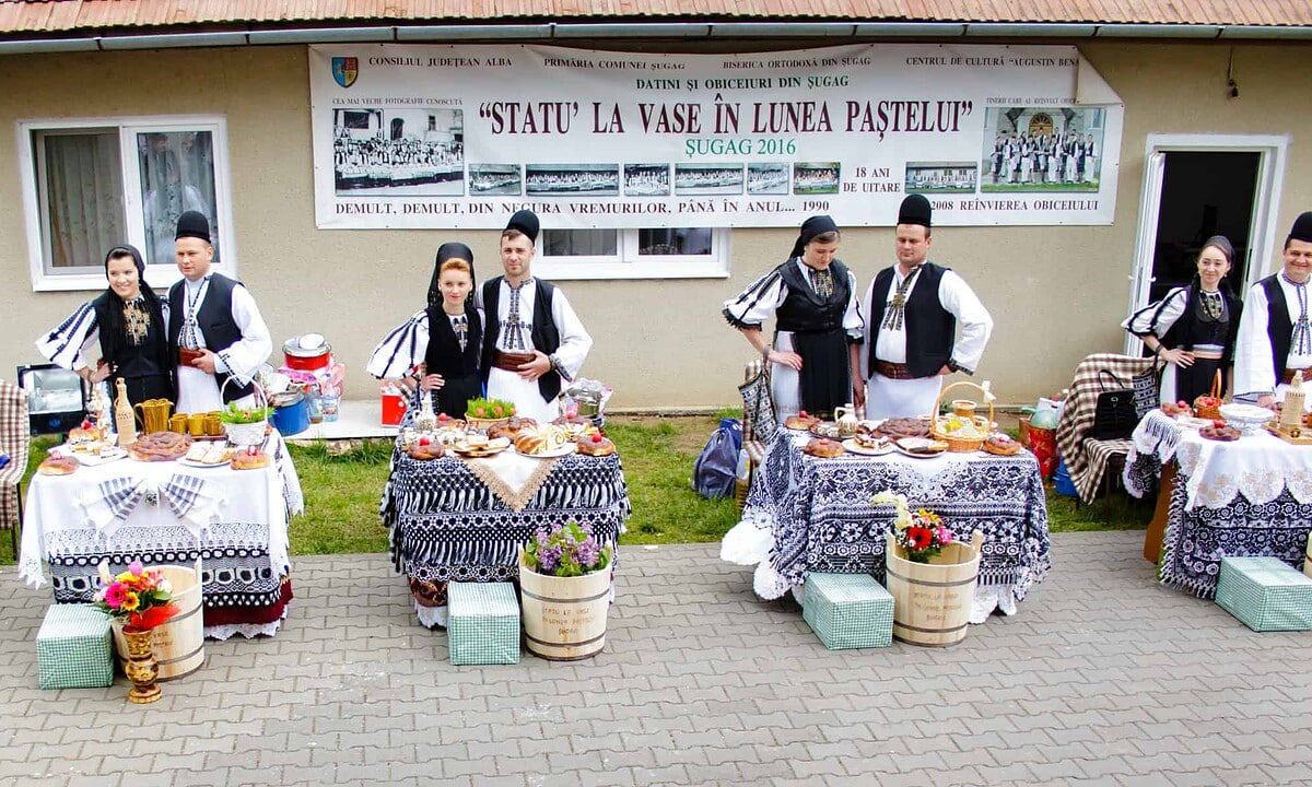 ,,Statu la vase în Lunea Paștelui” de la Șugag este un străvechi obicei tradițional, unic în țară, ce reunește atât sărbătoarea întemeierii unei familii, cât și sărbătorirea Sfintei Învieri a Domnului, obiceiul ale cărui origini se pierd în timp și în istoria acestor locuri.