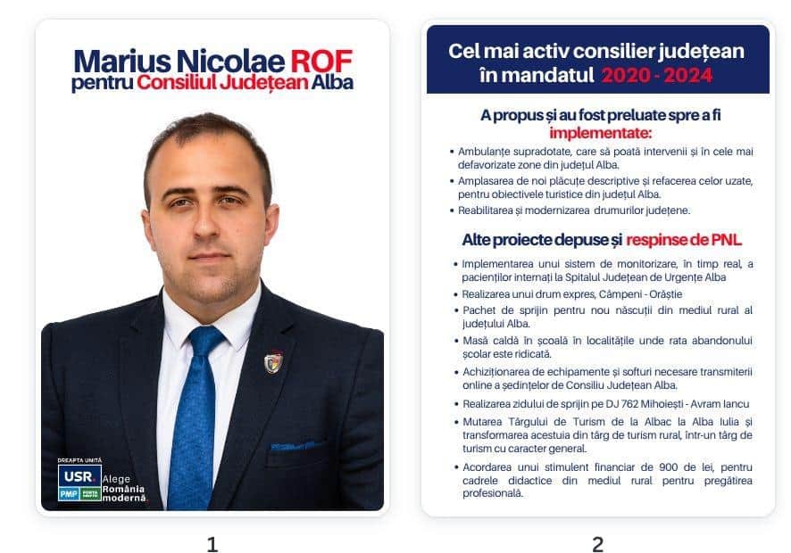 Acesta este politician, fost candidat al alianței Dreapta Unită (formată din USR, PMP și Forța Dreptei) la conducerea Consiliului Județean Alba, în 2024.