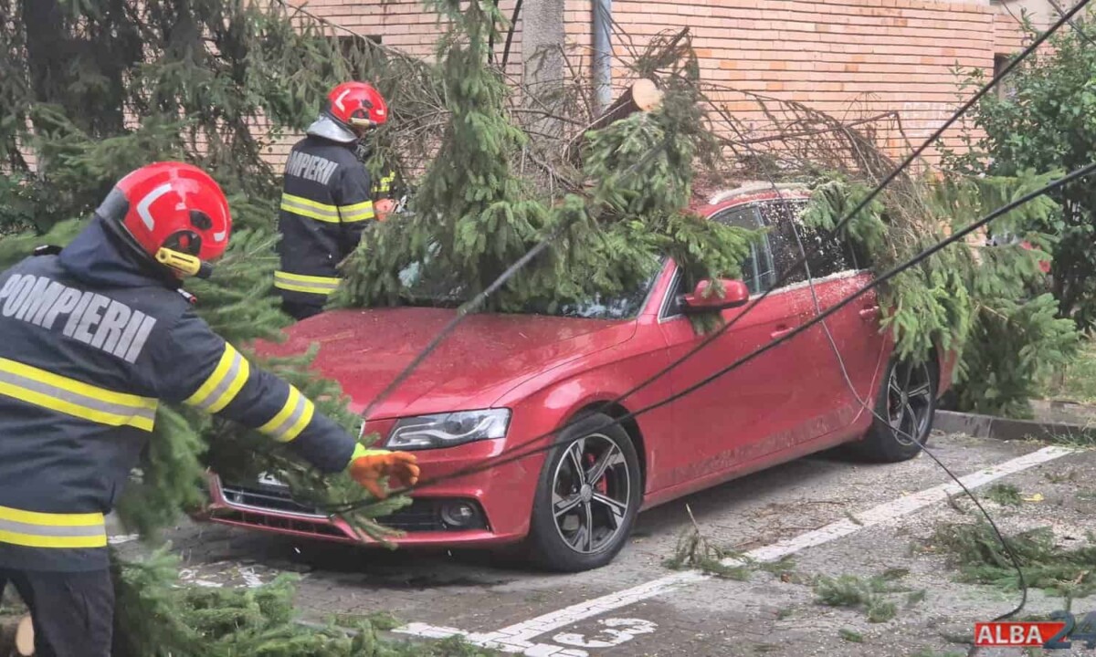 Potrivit ISU Alba, Detașamentul de pomoieri Alba Iulia intervine pentru degajarea unui copac căzut peste autoturism stationat în municipiul Alba Iulia, pe strada Vasile Goldiș.