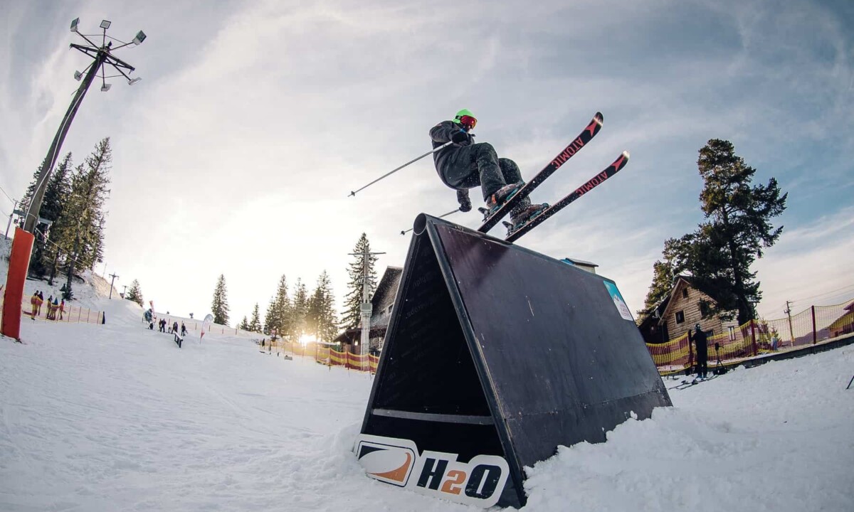 Pe timpul zilei, freesnowboarderi și freeskieri din întreaga țară se reunesc la Păltiniș pentru primul concurs al sezonului, Arena JIB.