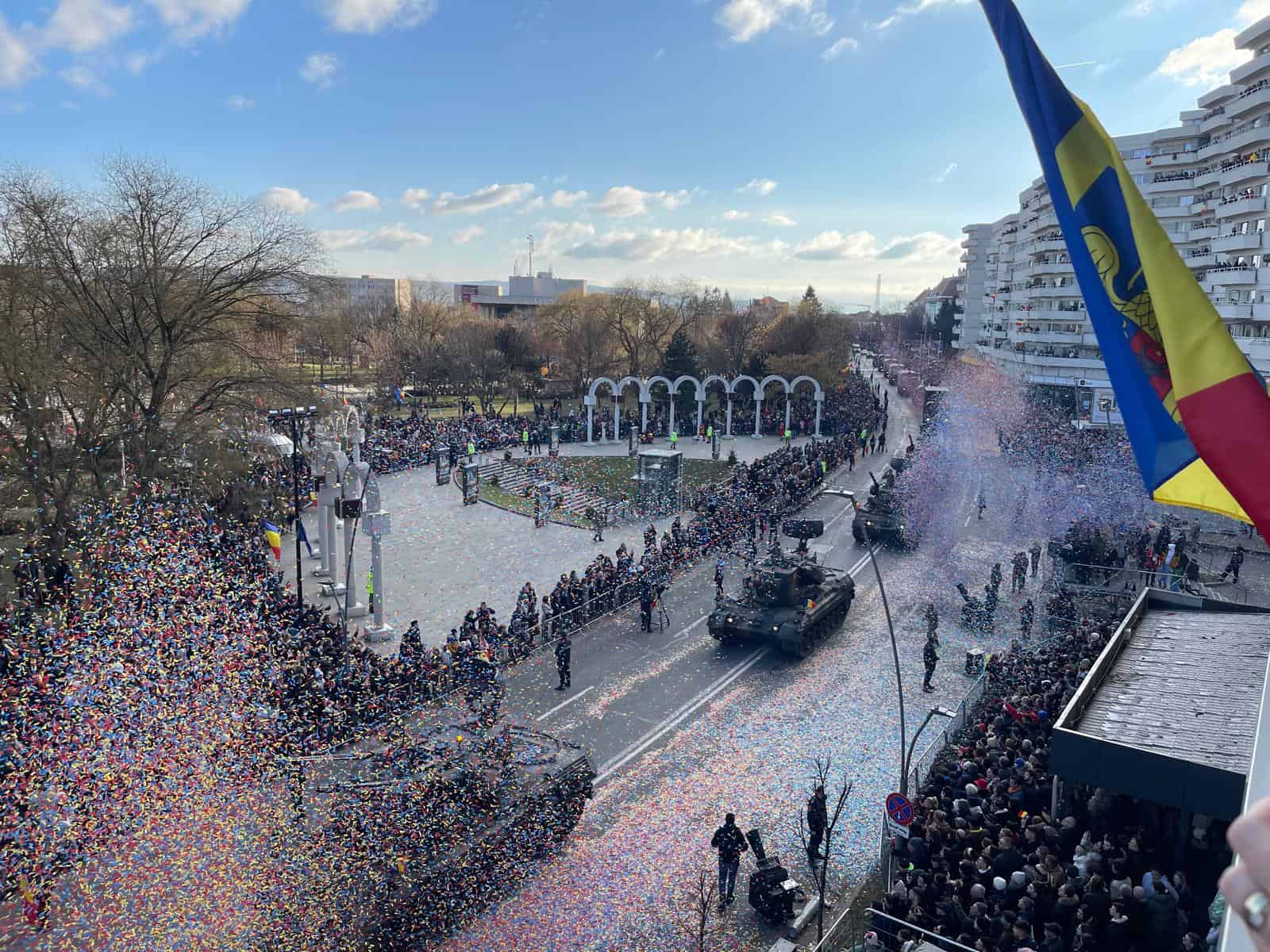 - Începând cu ora 14.00 va avea loc ceremonia militară cu defilare de trupe și tehnică de luptă în zona Bulevardului 1 Decembrie 1918;