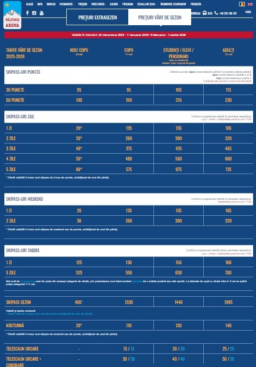 Tarife schi Păltiniș Arena