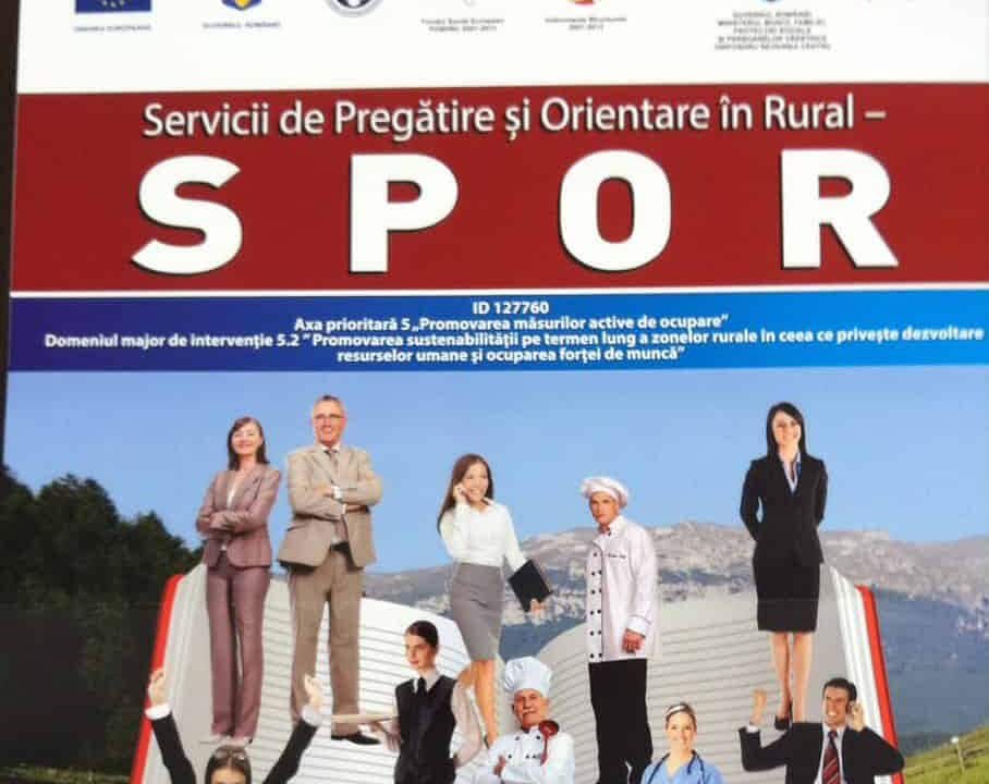 „Servicii de Pregătire și Orientare în Rural – SPOR” este finanţat de Fondul Social European, prin Programul Operaţional Sectorial Dezvoltarea Resurselor Umane, Axa prioritară nr.5 - Promovarea măsurilor active de ocupare, Domeniul major de intervenţie 5.2: „Promovarea sustenabilităţii pe termen lung a zonelor rurale în ceea ce priveşte dezvoltarea resurselor umane şi ocuparea forţei de muncă”.
