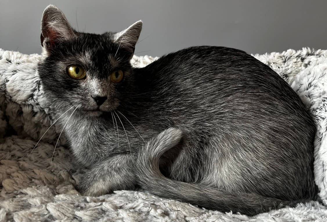 Cu o blană cenușie, o combinație între negru cu fire și extremități albe, asemănătoare celei a unui lup, pisica transilvană a ajuns la a patra generație de pui.