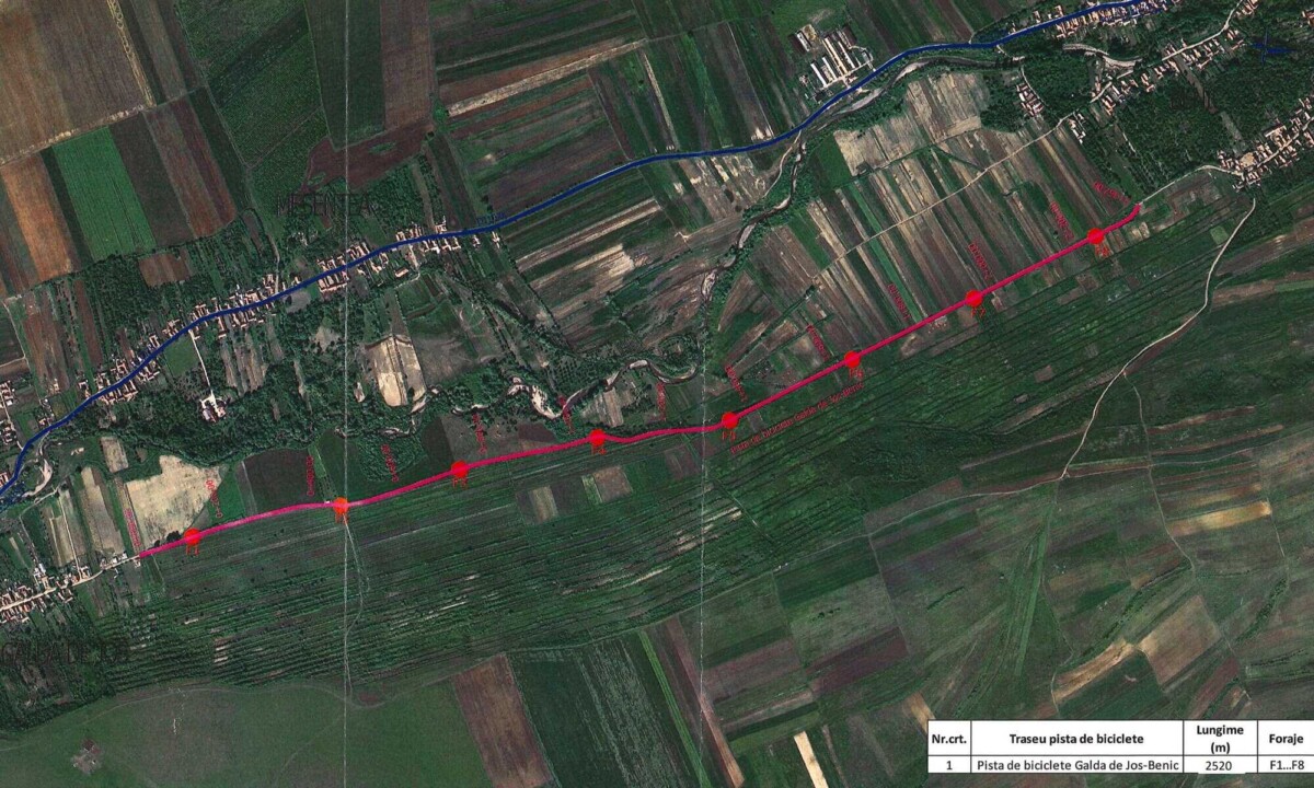 Potrivit documentației, pista de biciclete urmează să fie amenajată adiacent unui drum care face legătura între localitățile Galda de Jos și Benic.