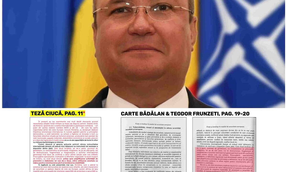 Premierul României, generalul în rezervă Nicolae Ciucă, a plagiat în lucrarea de doctorat pe care a susținut-o în 2003 la Universitatea Națională de Apărare „Carol I” (UNAP)” scrie Emilia Șercan.