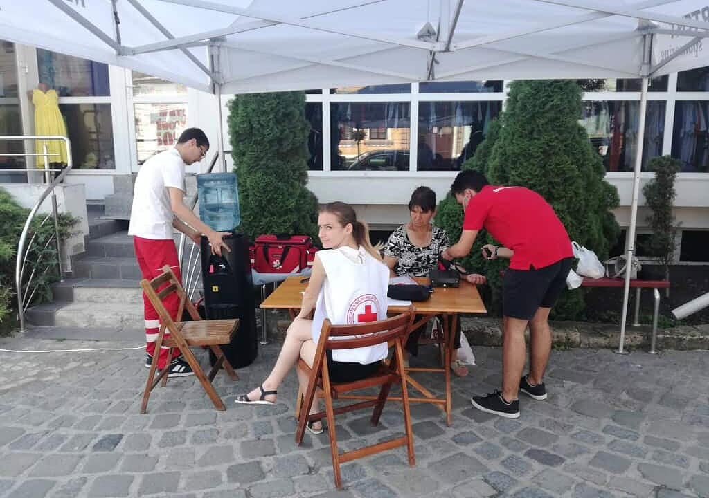 În cadrul acestui punct de prim ajutor, cetățenii își vor putea măsura tensiunea arterială și vor putea servi apa potabilă de la dozatorul pus în funcțiune.