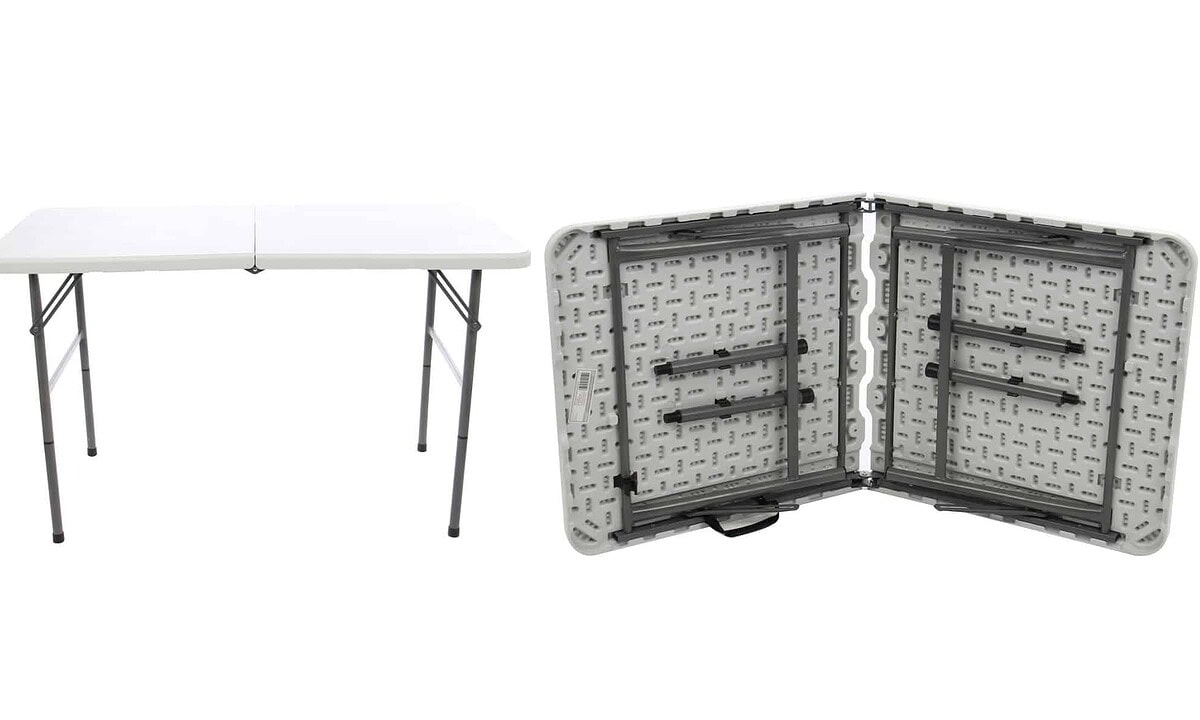 Fiecare masă poate fi pliată, pentru a putea fi transportată cu ușurință.