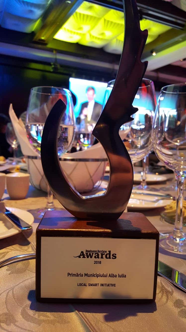 Primăria Alba Iulia a fost premiată la Gala Premiilor Business Review pentru eforturile transformării municipiului, într-un Smart City. La secțiunea „Local Smart Initiative” au fost cinci finaliști, printre care Primăria Cluj-Napoca, OMV şi Fundația Vodafone România, însă juriul a decis că administrația din „Cealaltă Capitală” este cea care merită premiul.