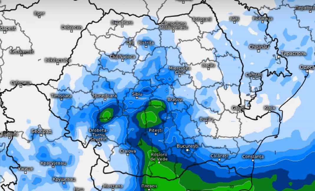 Precipitațiile pun stăpânire pe toată țara, iar prin nordul Moldovei, prin Transilvania, zonele montane se pot acumula chiar 15 – 20 l/mp.