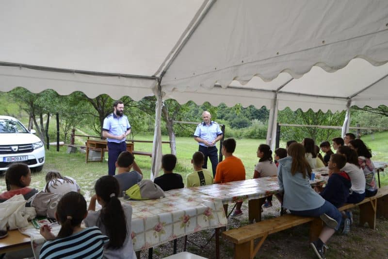 Proiectul IPJ Alba „În vacanță îmi fac doar amintiri frumoase”. Activități preventive în tabăra de vară de la Cetea