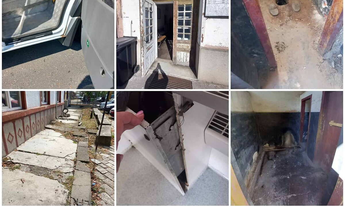 - nu se asigură condiții igienico-sanitare specifice activității (clădire gară neigienizată, toalete necurățate, sală de așteptare neigienizată, scaune rupte, praf, pânze de păianjeni, pardoseală necurățată, pardoselă și gresie uzată, ciobită, crăpată în toalete și în sala de achiziție bilete, geamuri murdare în strat grosier, tavan cu infiltrații în sala de așteptare);