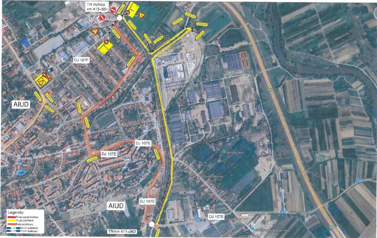 Circulația rutieră se va desfășura pe ruta ocolitoare DJ 107D, str. Morii, str. Stadionului, DJ 107E, traversare calea ferată str. Ion Creangă, str. Hotar (vecinătatea Prebet și vecinătatea grădinii Penitenciarului).