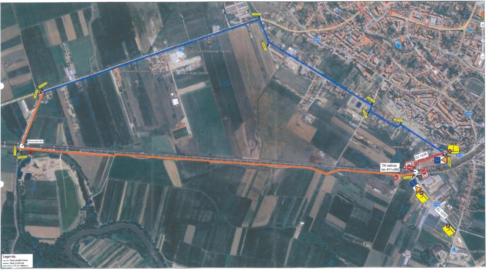 Circulația rutieră se va desfășura pe ruta ocolitoare DJ 107E, str. Ostașilor, DN1 (către localitatea Rădești), str. Episcop Demetreiu Radu, traversând calea ferată, urmând „Drumul Târgului”.