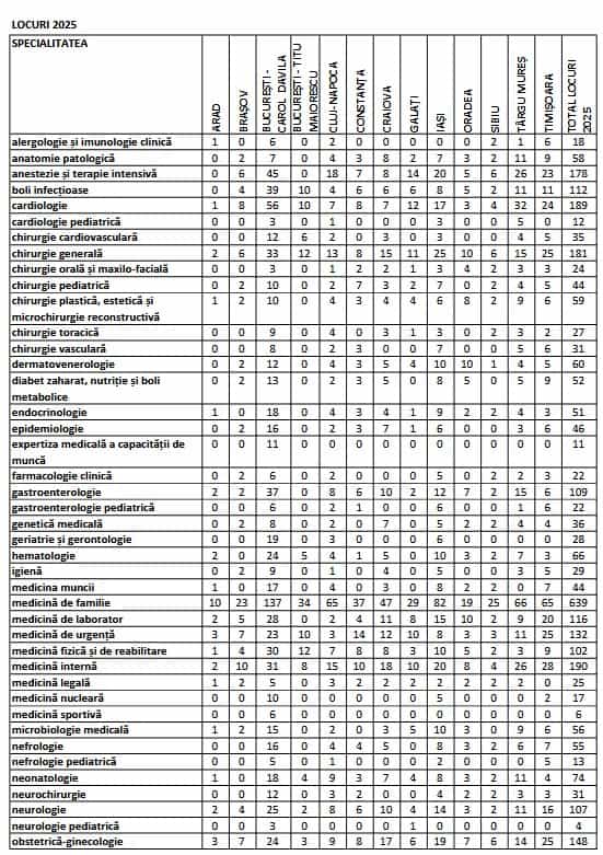 La Rezidențiat 2025 sunt disponibile 5.064 de locuri și 310 de posturi, astfel: