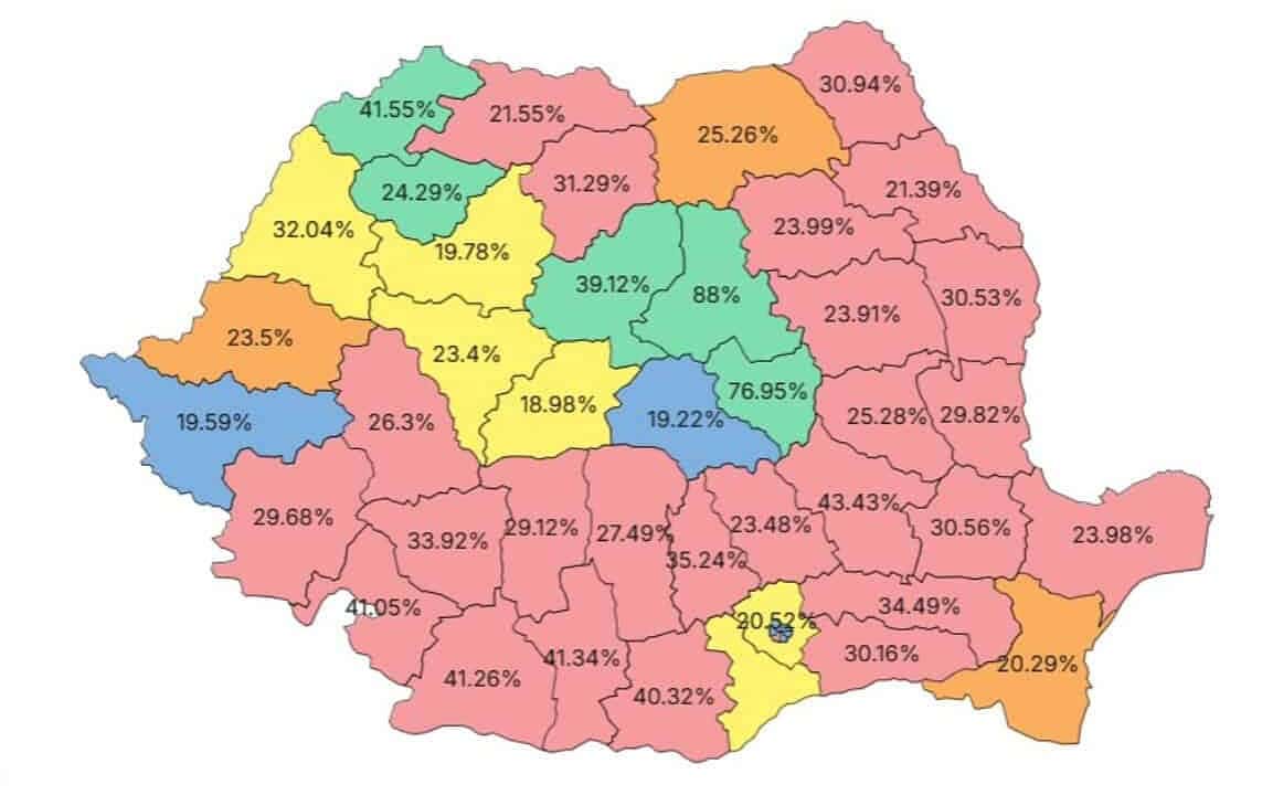 Potrivit rezultatelor centralizate de Autoritatea Electorală Permanentă, în urma înregistrării proceselor verbale din secțiile de votare, situația pe județe este următoarea: