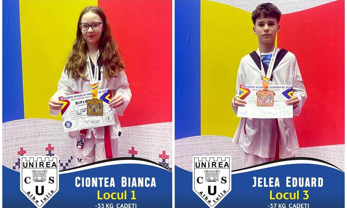 Sportivii CS Unirea Alba Iulia, Bianca Ciontea și Eduard Jelea, pregătiți de antrenorul Alin Moldovan, au obținut rezultate foarte bune la Campionatul Național de Taekwondo WT 2026 – copii, juniori mici și cadeți, desfășurat în perioada 6–8 martie, la București.