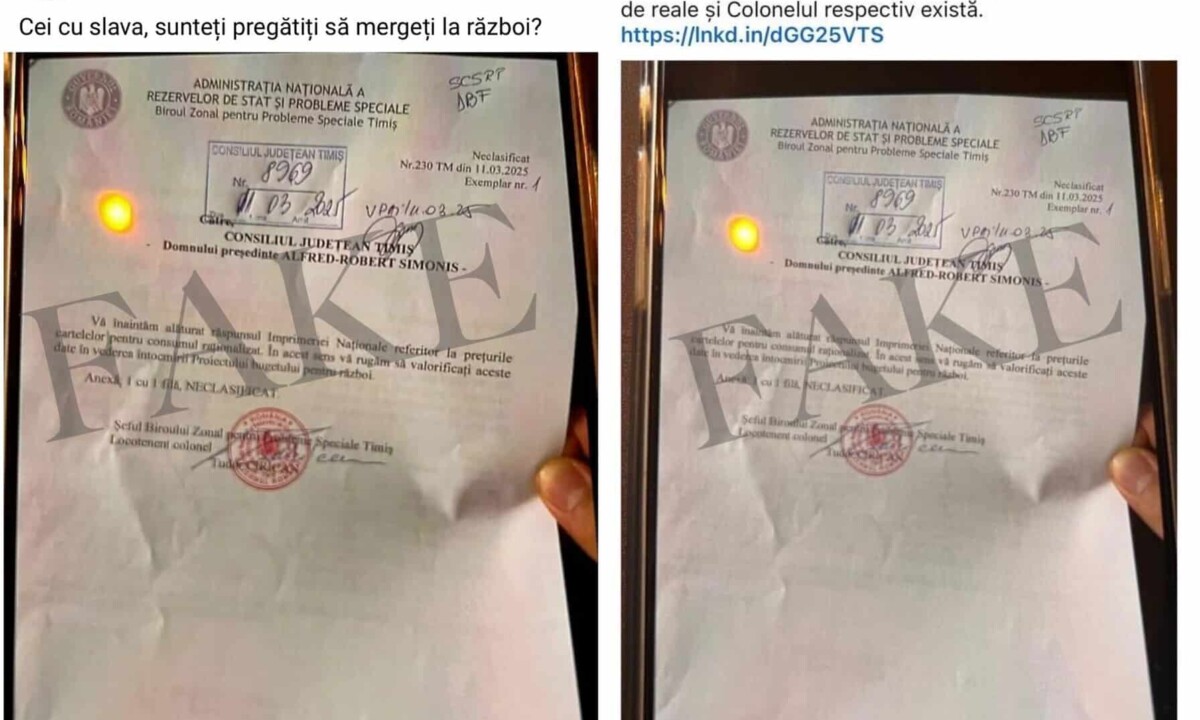 O procedură inițiată periodic de Administrația Națională Rezervelor de Stat și Probleme Speciale (ANRPS) a fost transformată într-o panică virală pe rețelele de socializare. Mai exact, o adresă neclasificată a ANRPS, transmisă către administrația județului Timiș, a fost fotografiată și distribuită în spațiul public, fără ca cei care au distribuit fotografia să ceară lămuriri celor abilitați despre conținut.