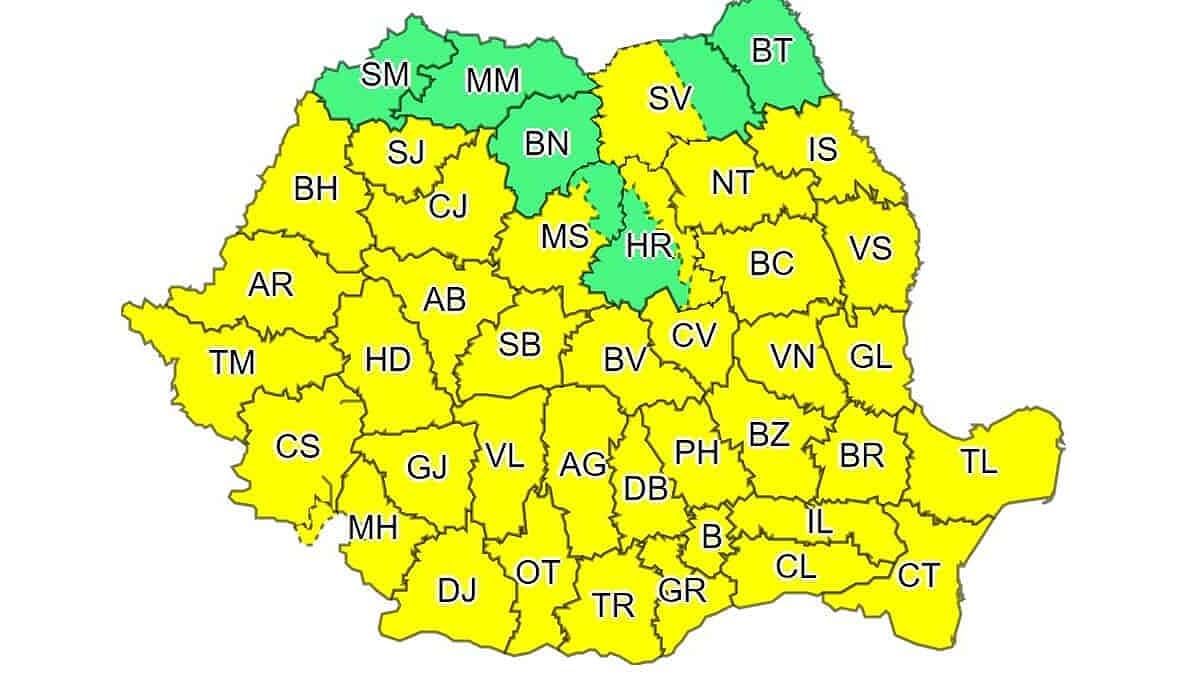 Autoritățile au emis o nouă avertizare de cod galben de vânt în cea mai mare parte a României. Potrivit specialiștilor de la Administrația Națională de Meteorologie, codul este valabil duminică, până la ora 23.00, în cea mai mare parte a țării.