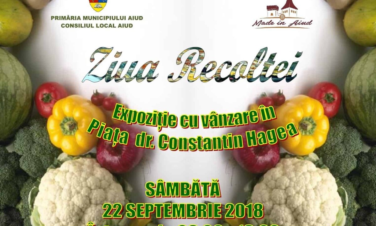 Primăria municipiului Aiud organizează sâmbătă, 22 septembrie, începând cu ora 8.00, în Piața Dr. Constantin Hagea, evenimentul ”Ziua Recoltei”.