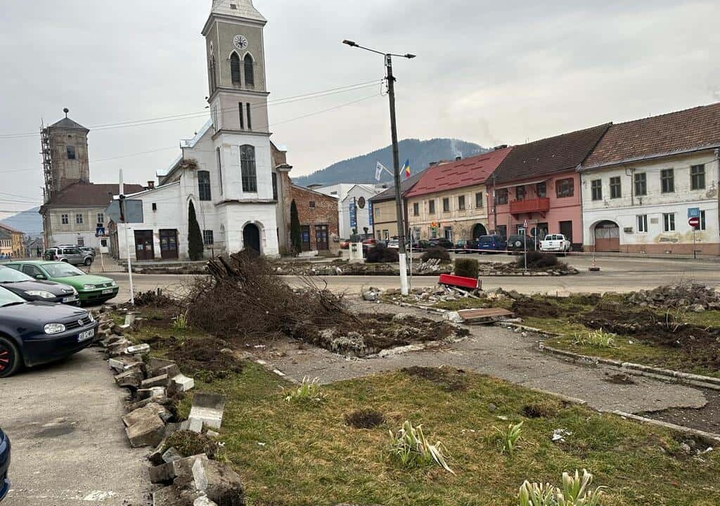 Schimbarea la față a Abrudului: au început lucrările pe străzile din zona centrală și la Biserica Unitariană.