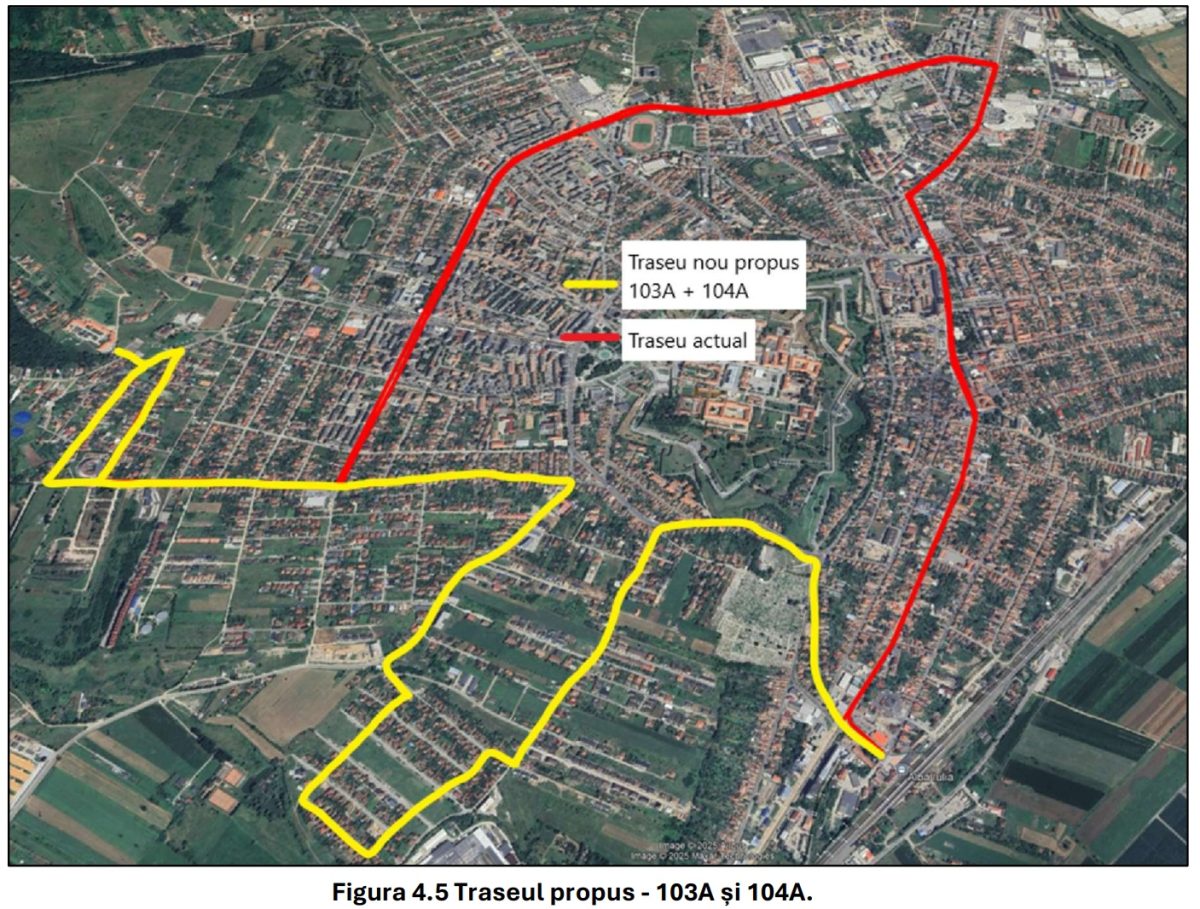 În paralel, pentru a elimina ocolurile și suprapunerile cu liniile principale, liniilor 103A și 104A este necesară o regândire a acestora. În forma actuală, traseele ocolesc inutil prin nordul municipiului, suprapunându-se parțial cu liniile principale și generând timpi mari de parcurs.