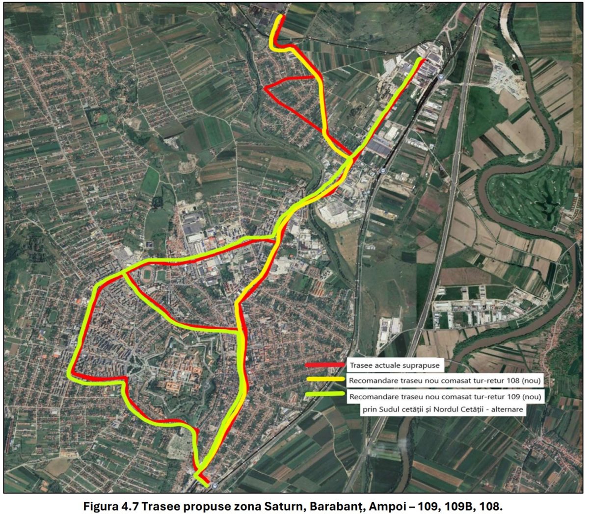 Pentru simplificarea rețelei, se propune comasarea întregii familii de linii Gemina/Bărăbanț/Ampoi în două rute principale: