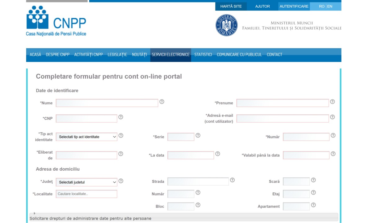 Servicii online disponibile pe site-ul Casei Naționale de Pensii. Platforma online a Casei Naționale de Pensii Publice (CNPP) pune la dispoziția utilizatorilor autentificați o serie de servicii electronice, accesibile fără deplasarea la ghișeu. Înregistrarea se realizează prin completarea unui formular, urmată de o procedură de verificare și activare a contului.