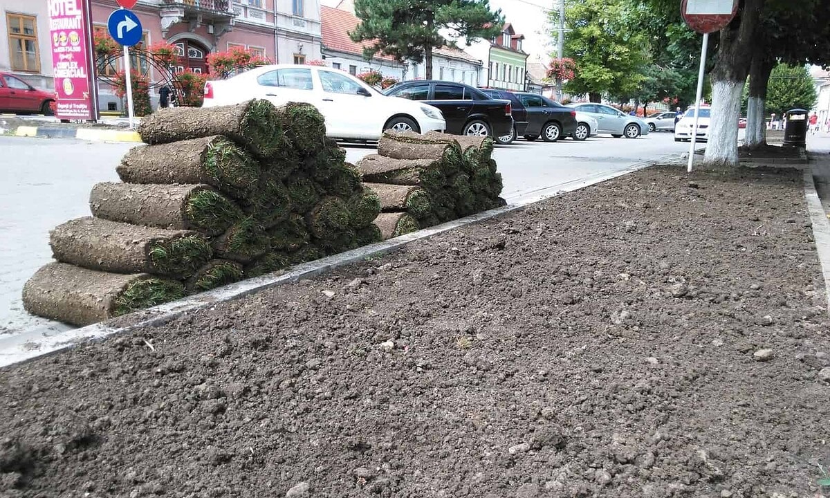 Au fost puși 13.500 de metri pătrați de gazon, la prețul de 31,40 de lei metrul pătrat. Gazonul este de tip ”rulou”, mult mai scump decât cel însămânțat și mult mai greu de întreținut ulterior din punct de vedere al costurilor. În total, pentru gazon, factura Primăriei ajunge la peste 420.000 de lei (plus TVA).