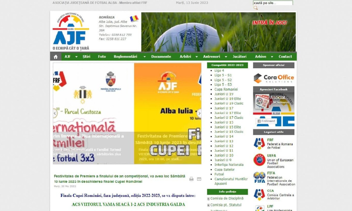 Site-ul AJF din Alba, încremenit în timp: Platforma fotbalului județean a rămas neschimbată de 15 ani