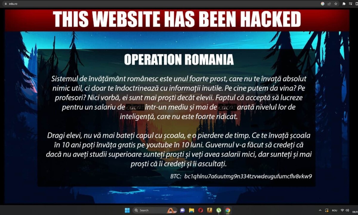 Website-ul oficial al Ministerului Educației a căzut pradă unui atac cibernetic al unor hackeri. Aceștia au afișat un mesaj antisistem pe prima pagină a site-ului.