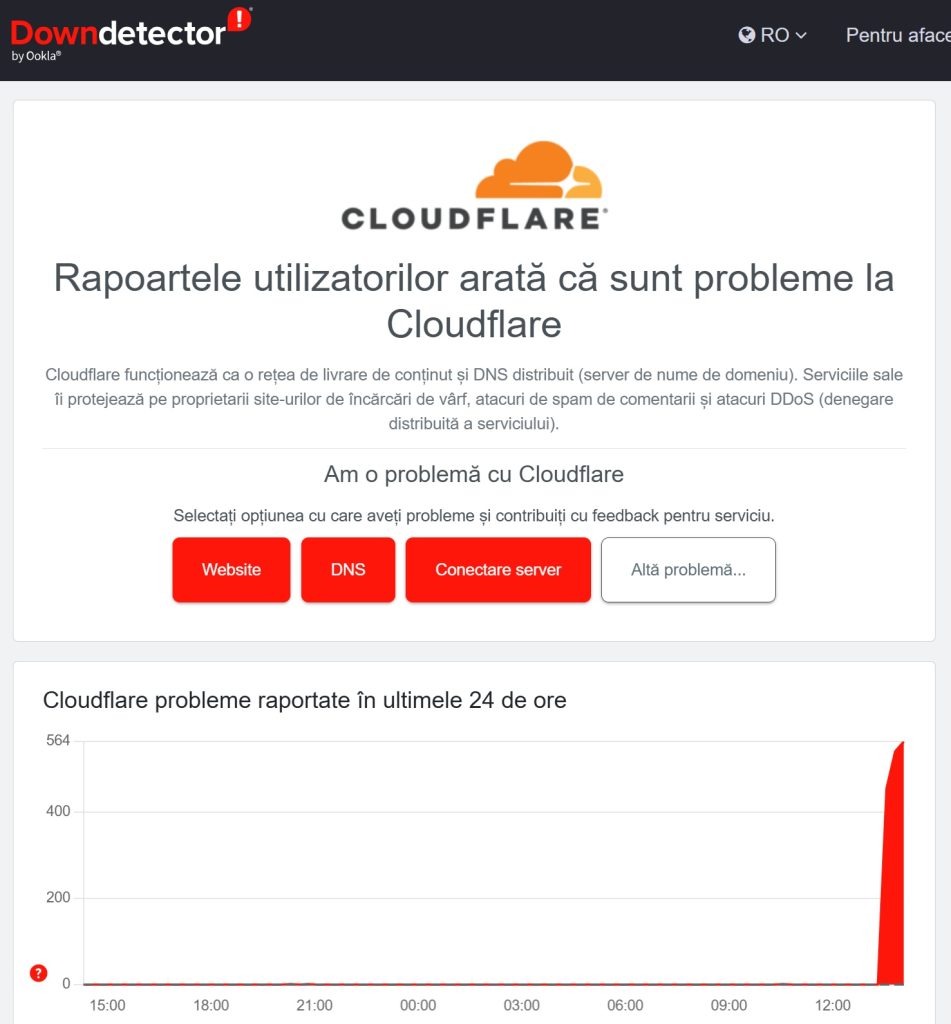 UPDATE, ora 15:00 – Potrivit DNSC, mai multe site-uri web au fost indisponibile din cauza unor probleme ale serviciilor Cloudflare.